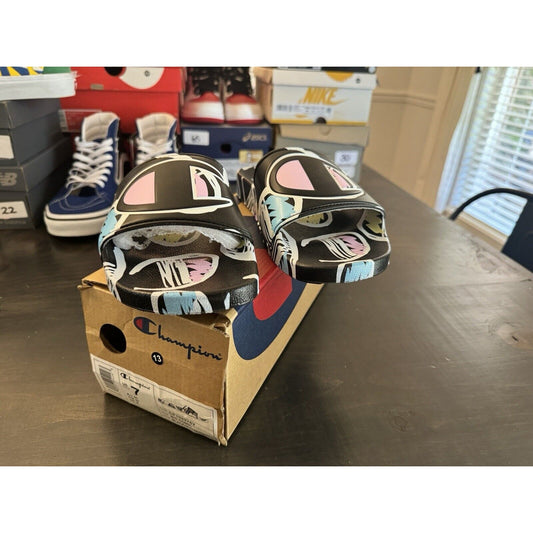 Champion IPO Comic Slides Black Multicolor Size 7 Youth/9 W (GS) Big Kids' NWB!