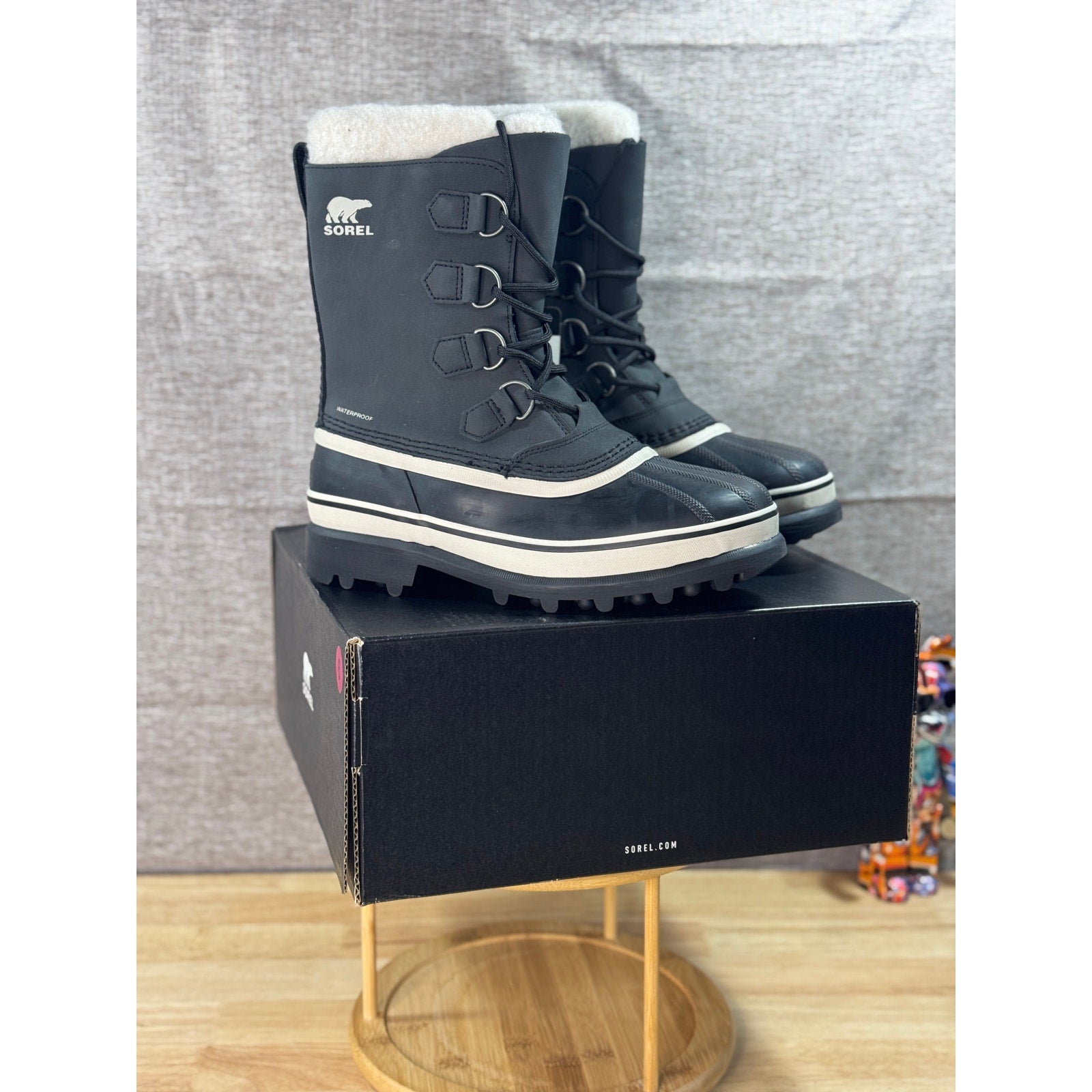 SOREL Caribou WP Black/Stone Waterproof Insulated Women’s Boots Size 9
